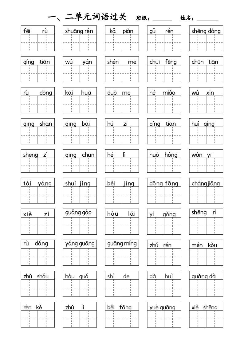 部编本新教材 小学一年级下册1-4单元 词语通关练习