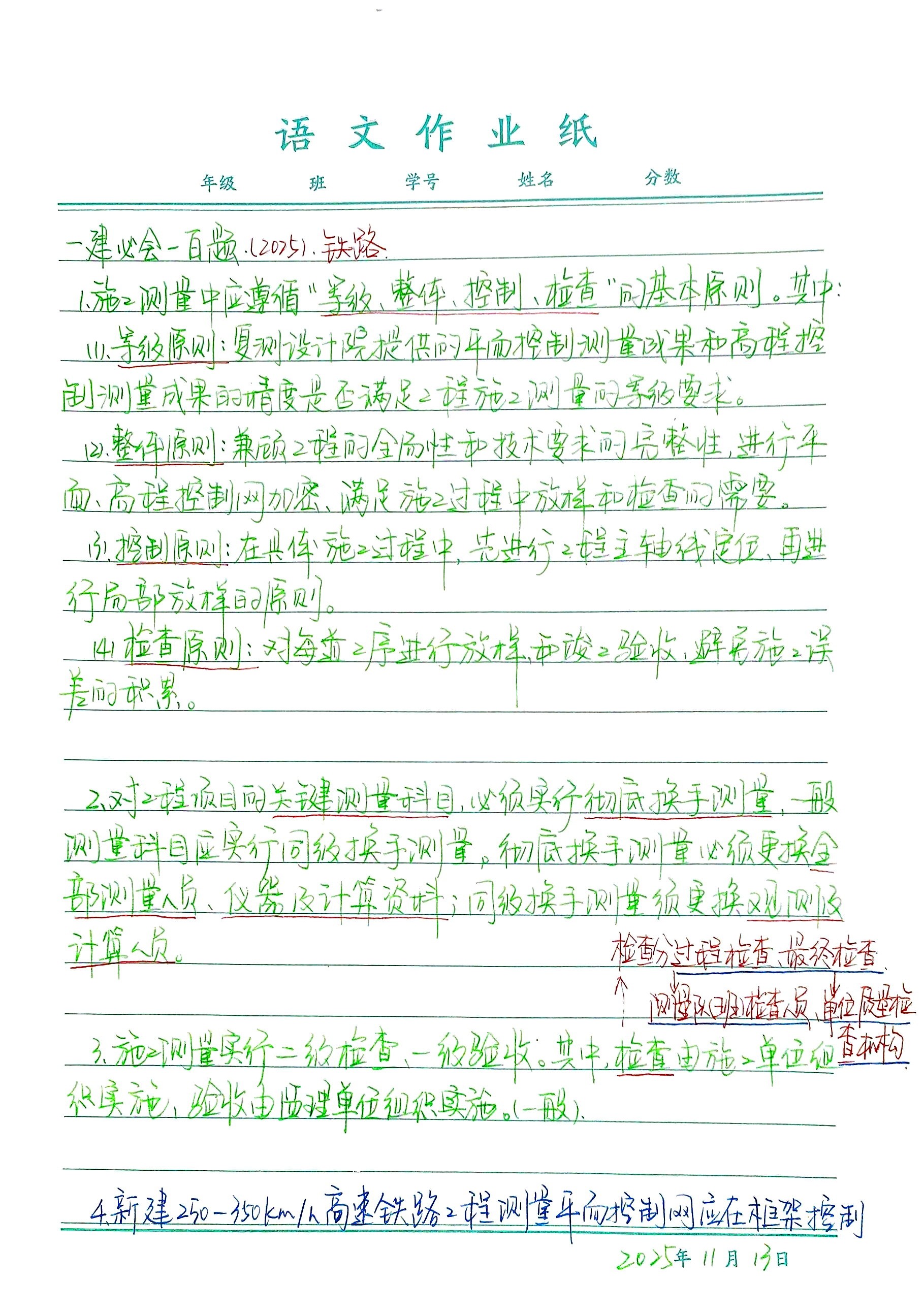 (2025版)一级建造师 铁路实务 必会知识点 手写版1